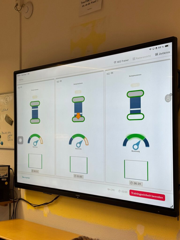 Unser 8. Jahrgang kam heute in den Genuss des Projektes Wiederbelebung.macht.Schule, welches von Ehrenamtlern aus Eutin und Plön angeboten wurde. Dabei übten Ärzte und Notfallsanitäter:innen die Wiederbelebung mit unseren Schülerinnen und Schülern gemäß der Maxime: Prüfen – Rufen – Drücken!